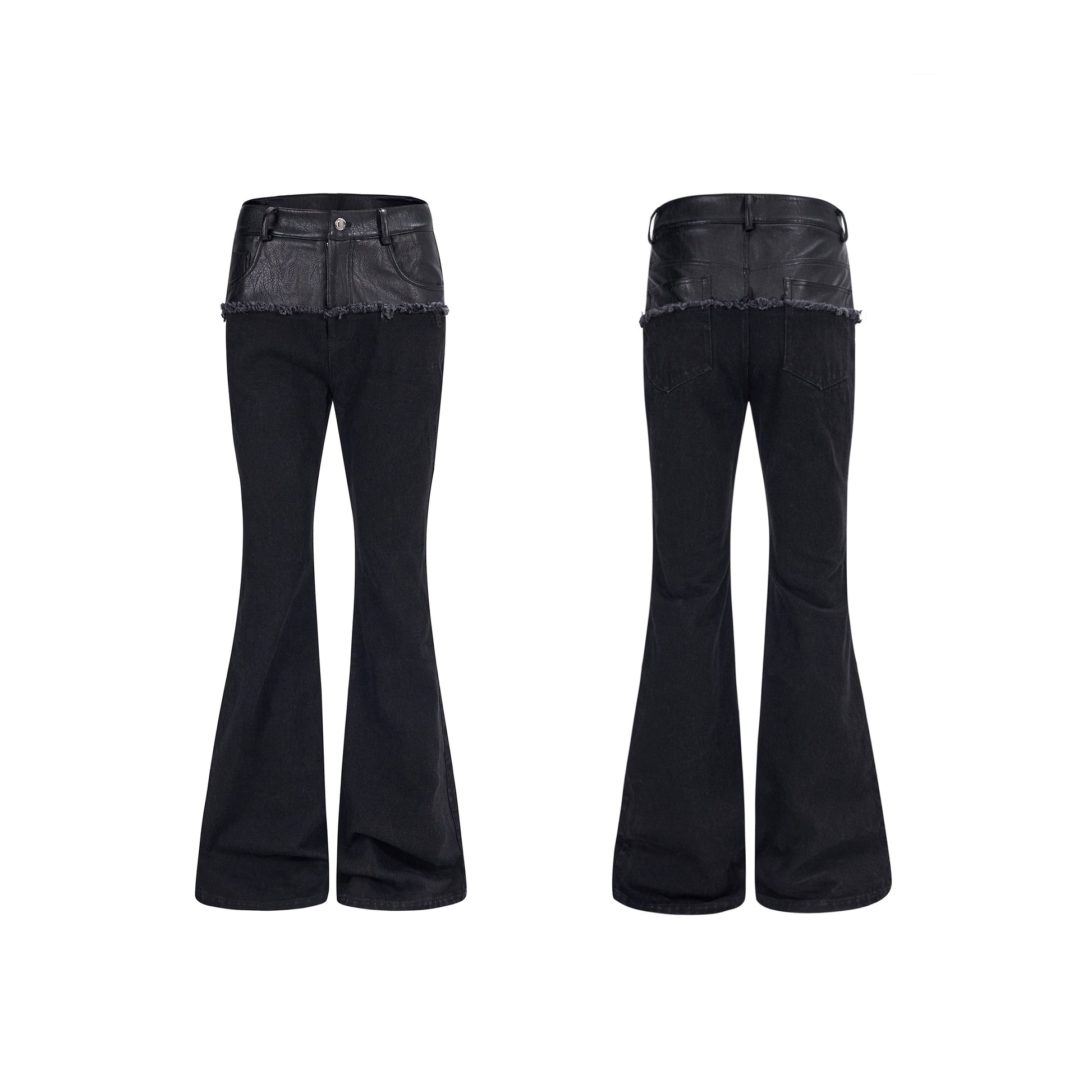 【25s Sep.】High Street Paneled Leather Bootcut Jeans