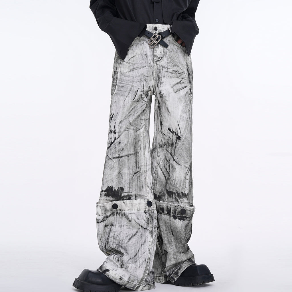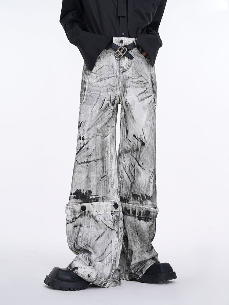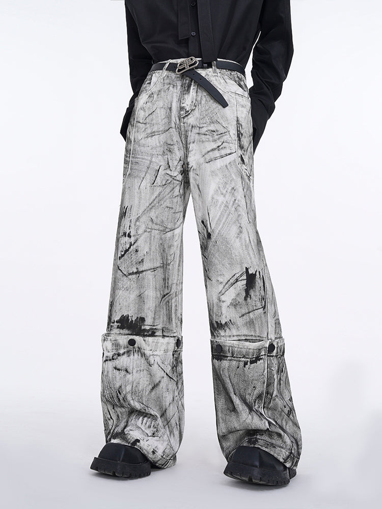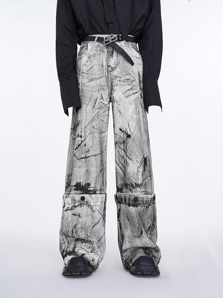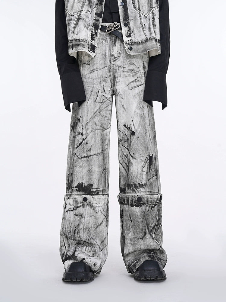 【25s Jan.】High Street White Graffiti Detachable Design Jeans