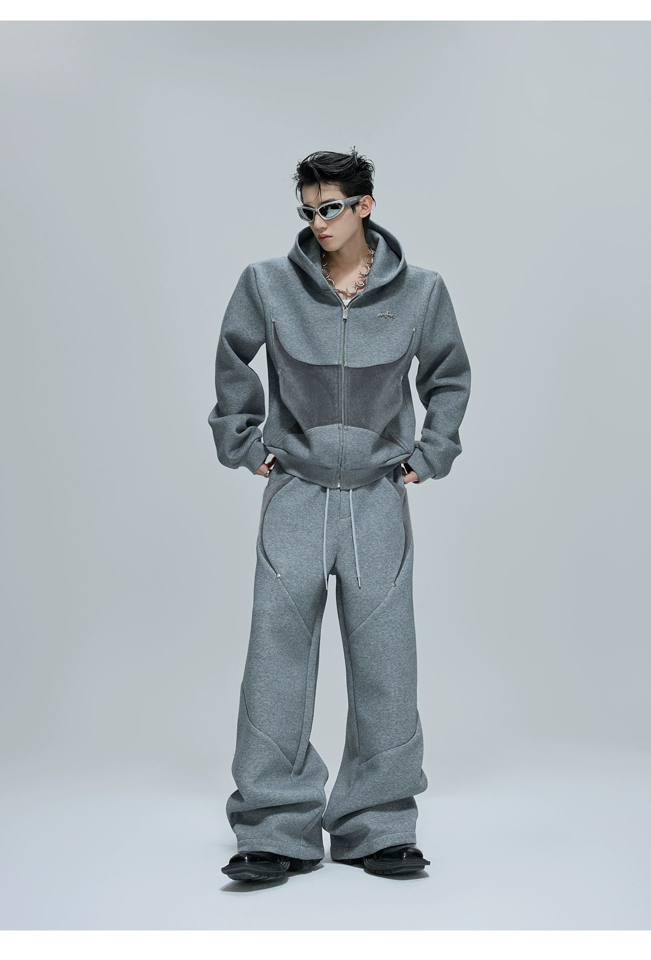 【25s Oct.】Hooded Cropped Mohair Patchwork Hooide/Pants