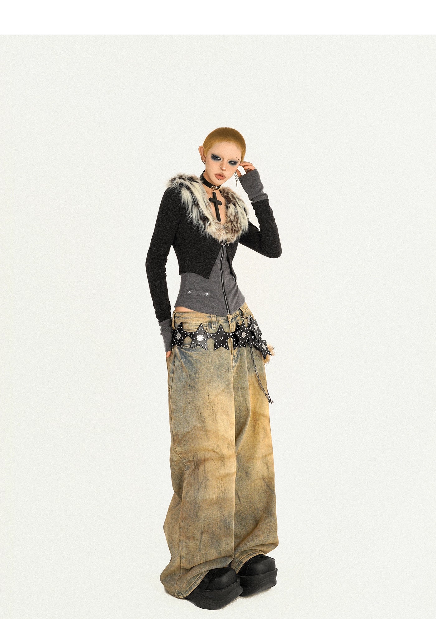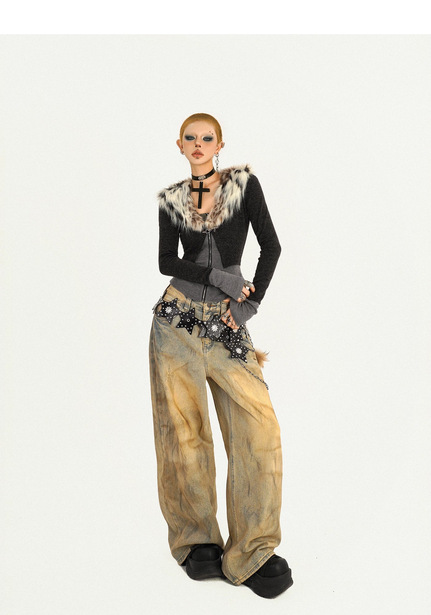 【25s Oct.】Hot Girl Leopard Print Fur Collar Knit Cardigan