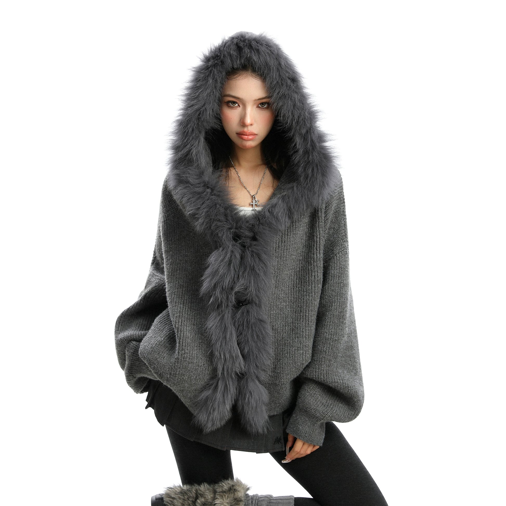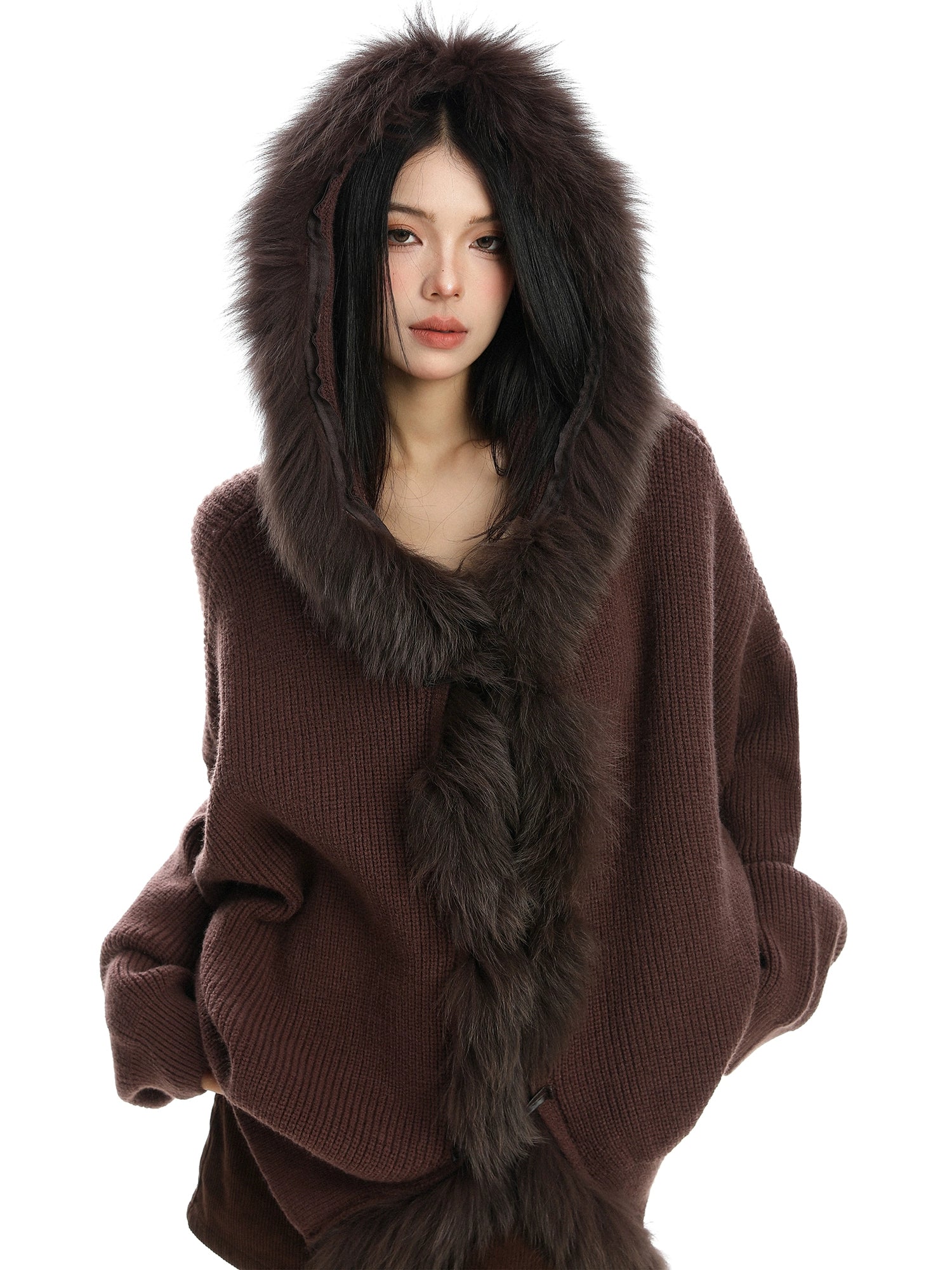 【25s Nov.】Large Fur Collar Hooded Cardigan