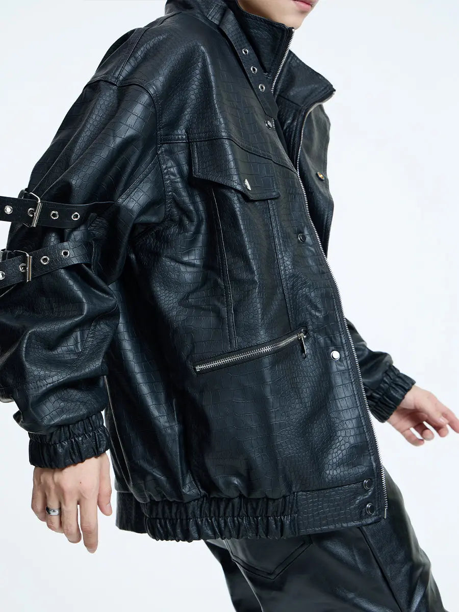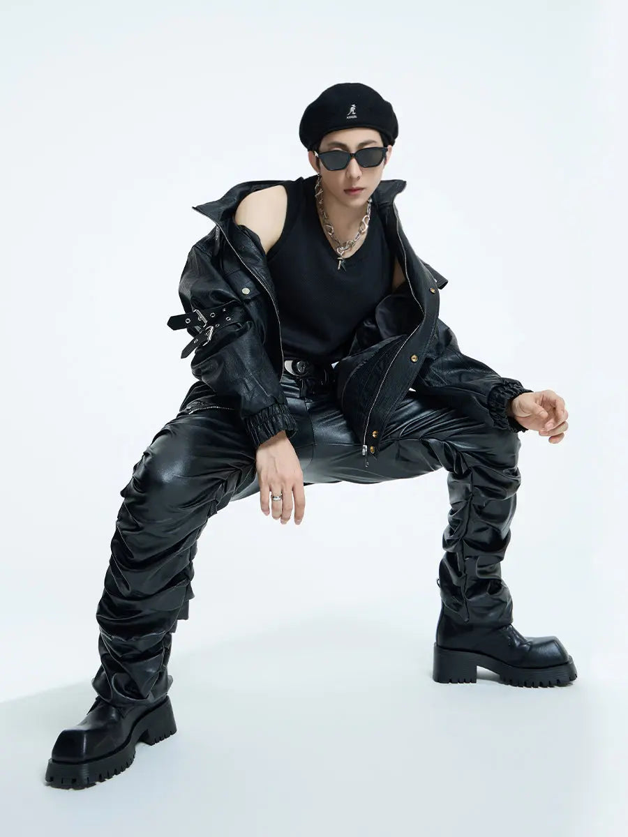 【23s September.】Loose Casual Retro PU Leather Jacket+ Leather Pants