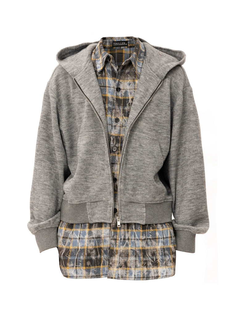 【25s Jan.】Multi-wear Plaid Patchwork Loose Coat