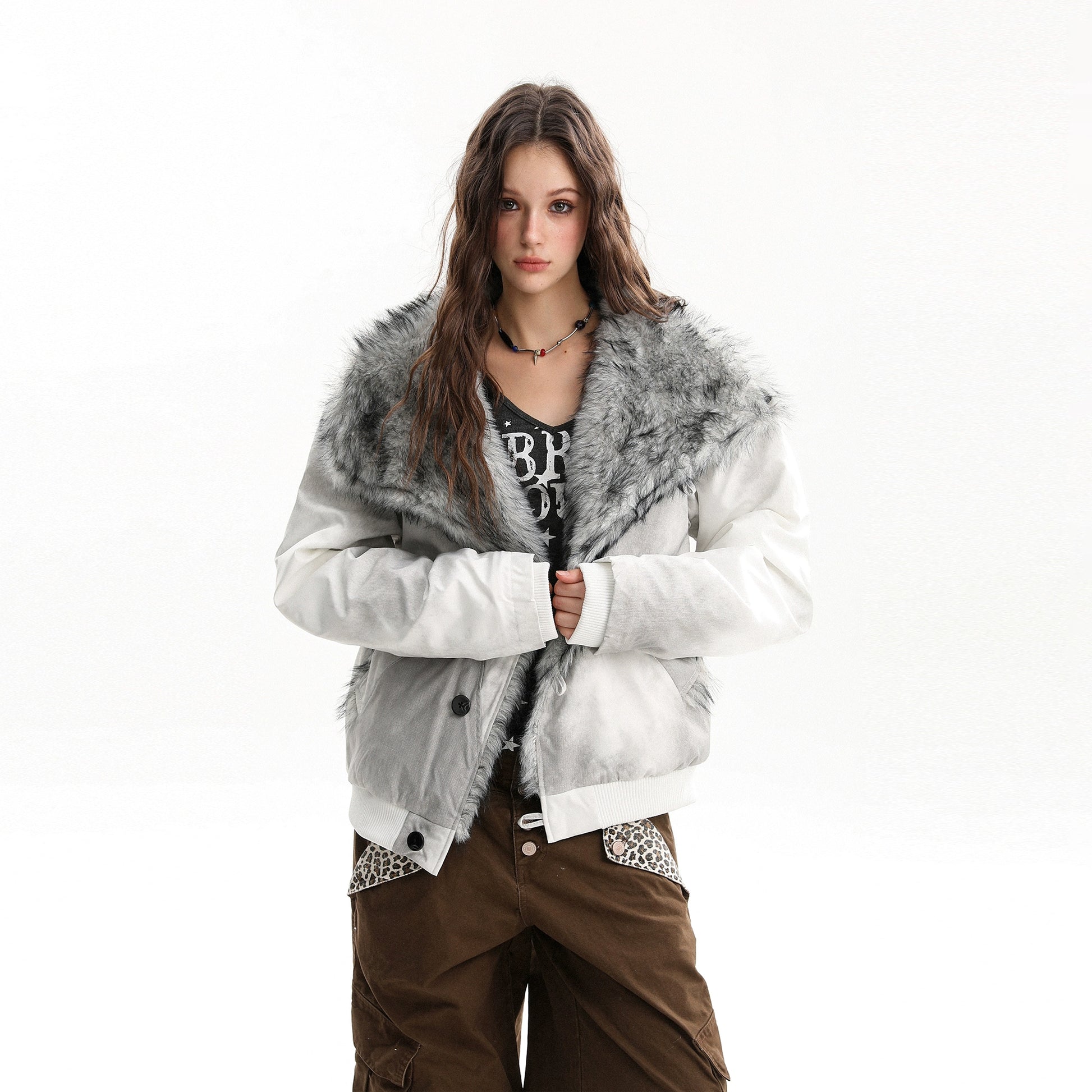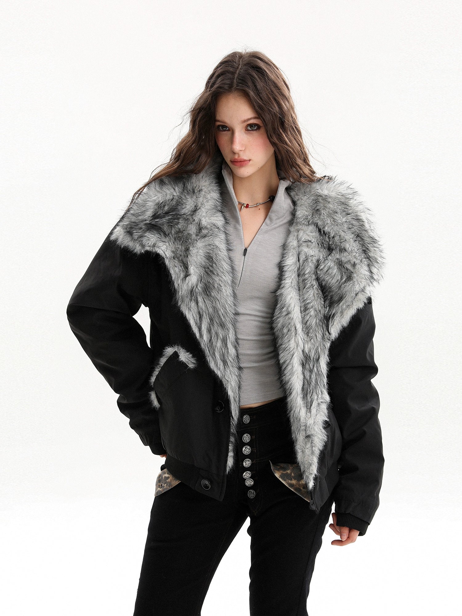 【25s Nov.】Oversized Collared Fur Trim Cotton Coat