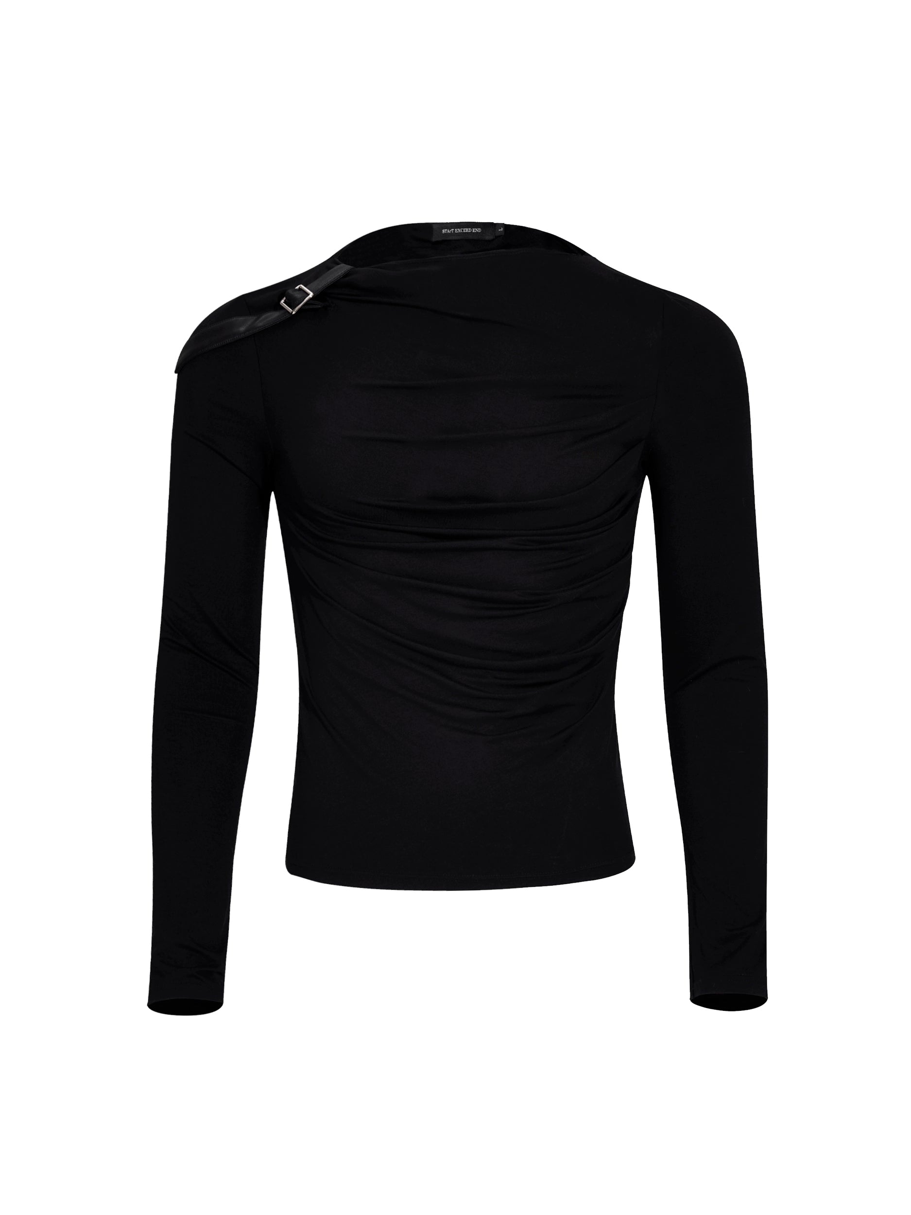 【25s Oct.】Pleated Leather Long-sleeved Bottoming Shirt