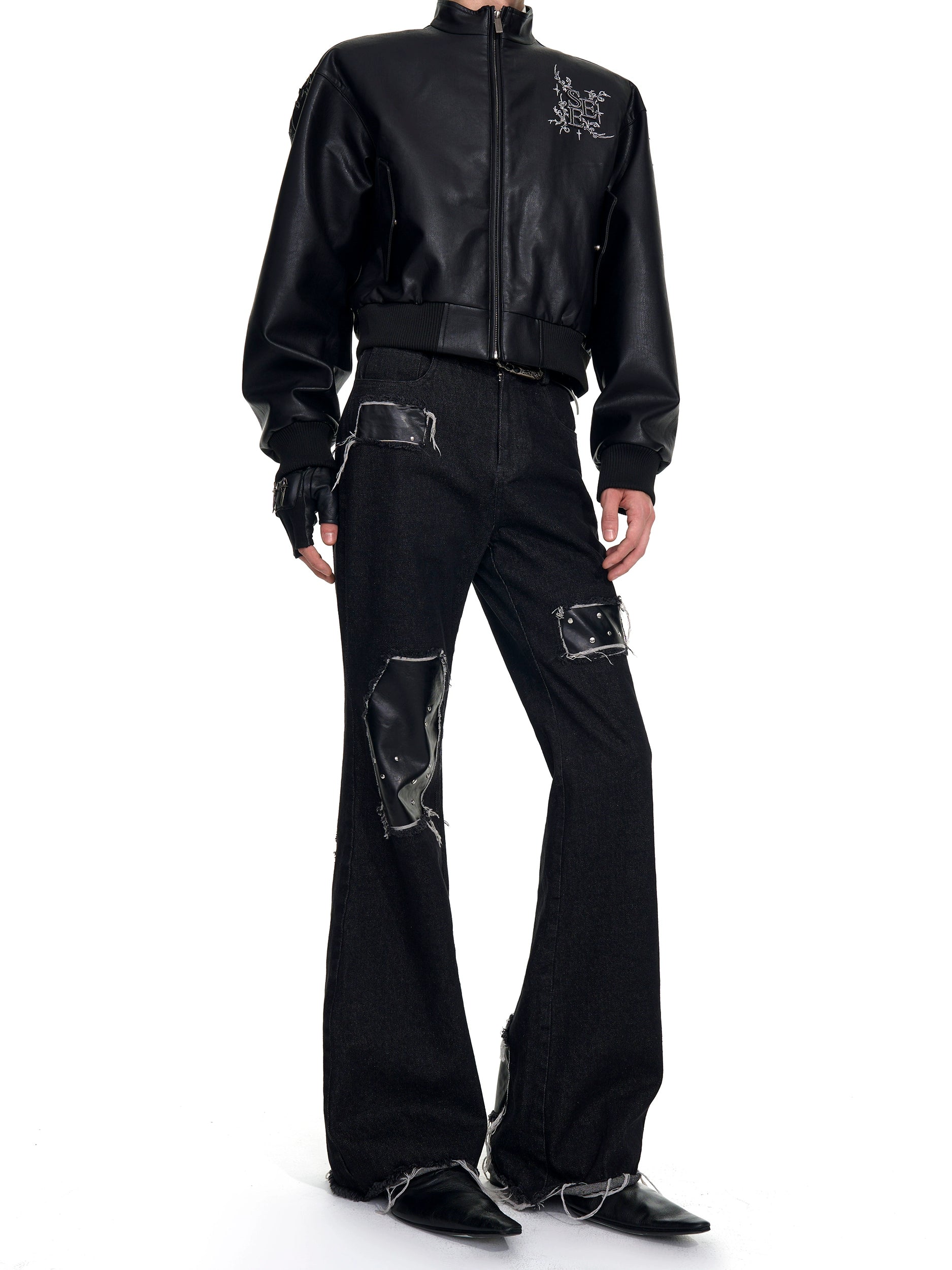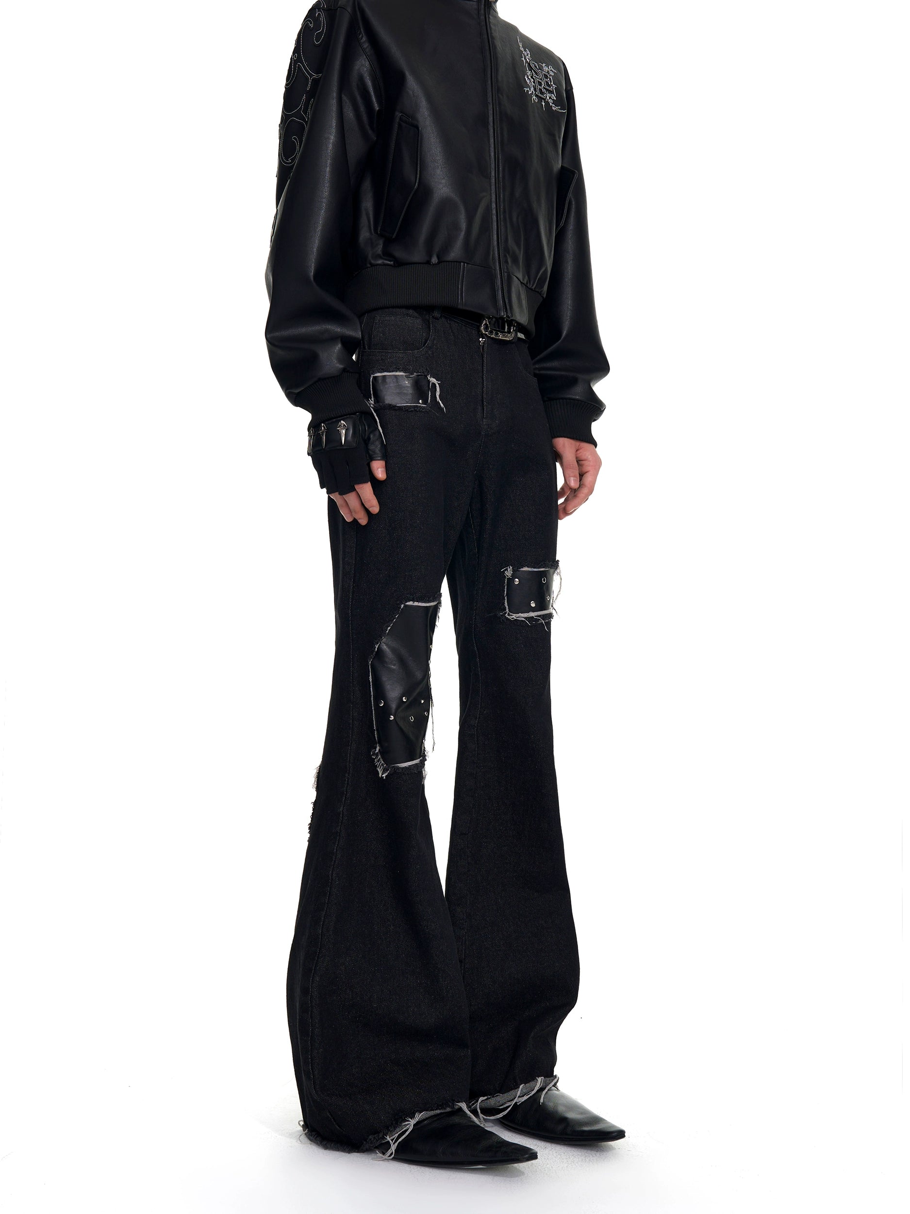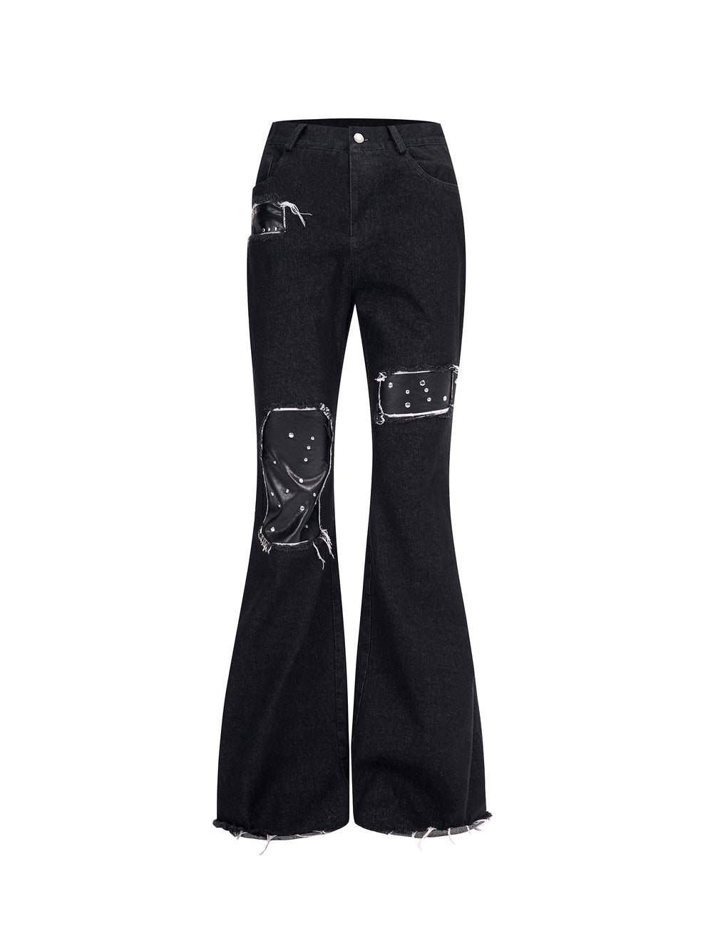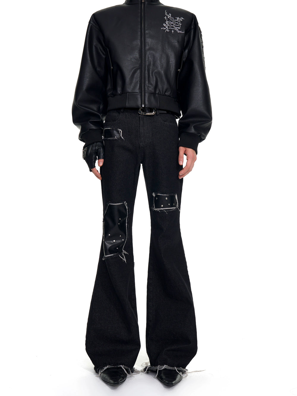 【25s Oct.】Raw-edge Fringed Leather Bootcut Jeans