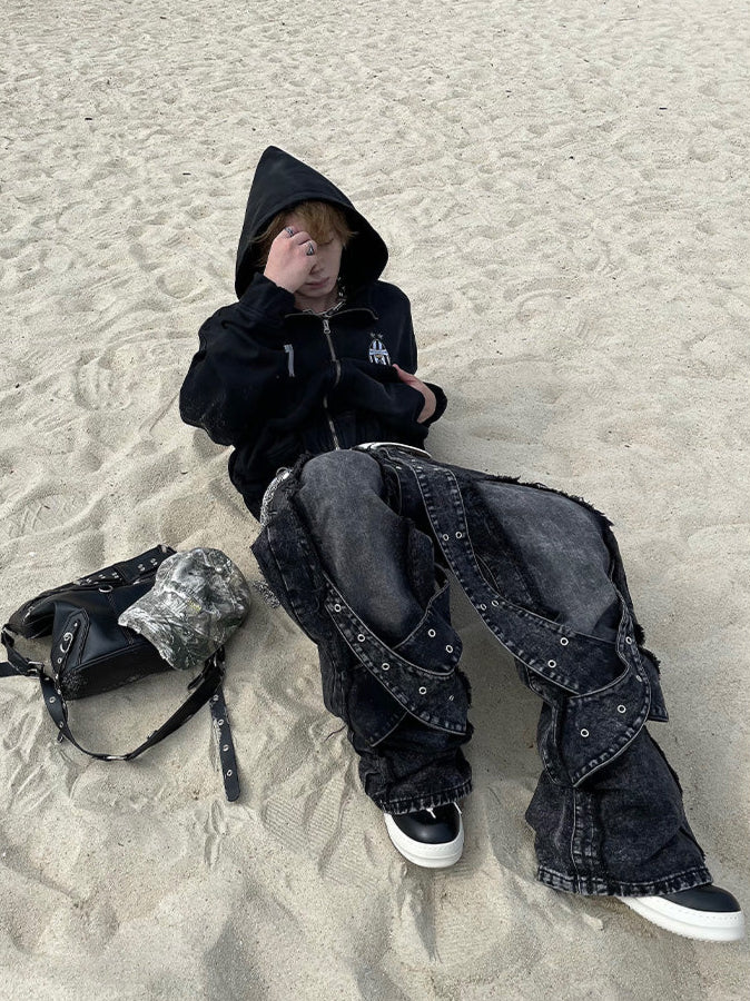 【25s Jan.】Ribbon Stitching Straight-leg Heavy-duty Jeans