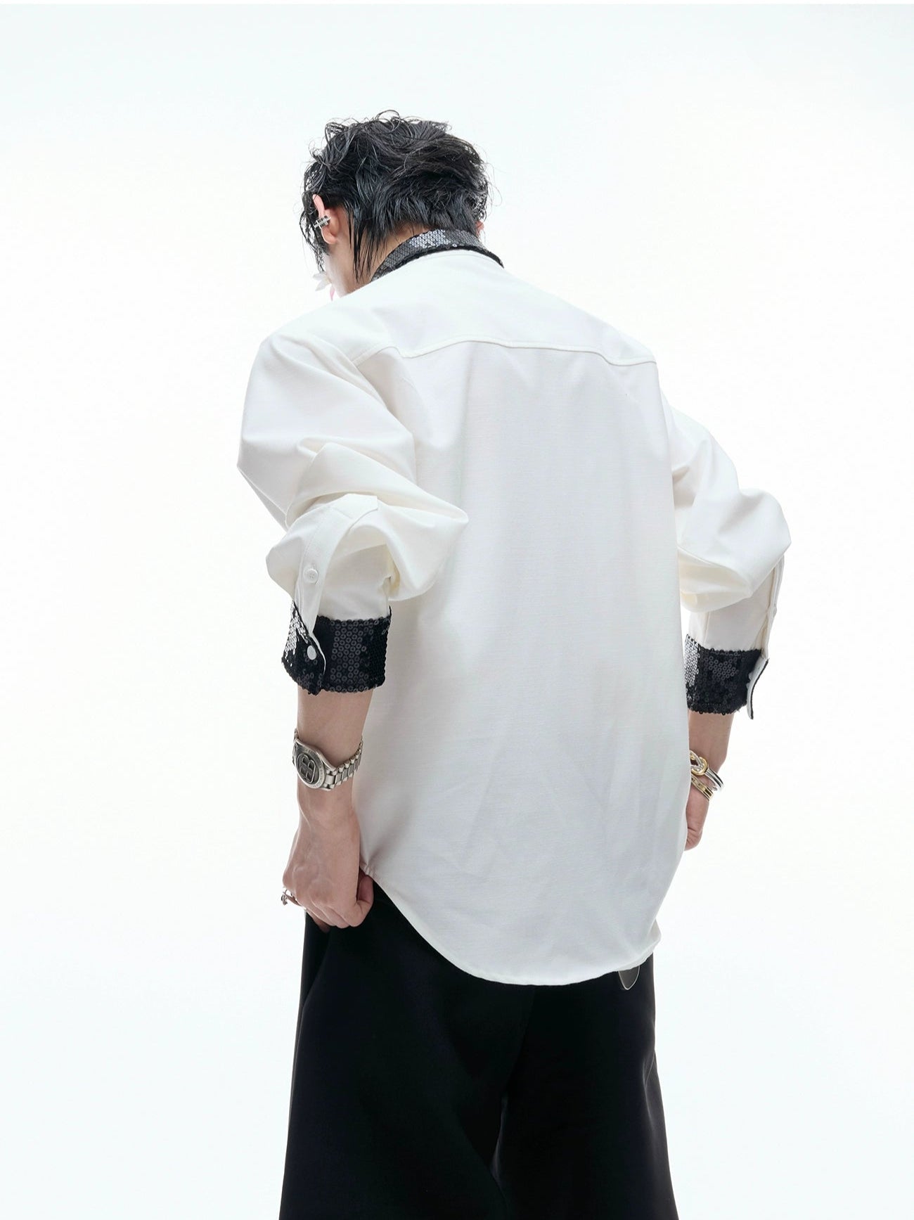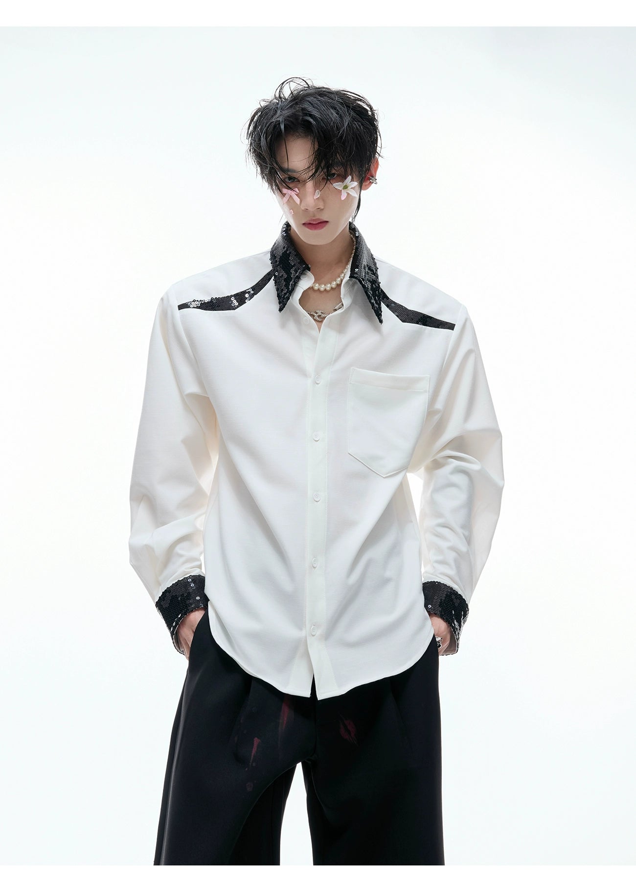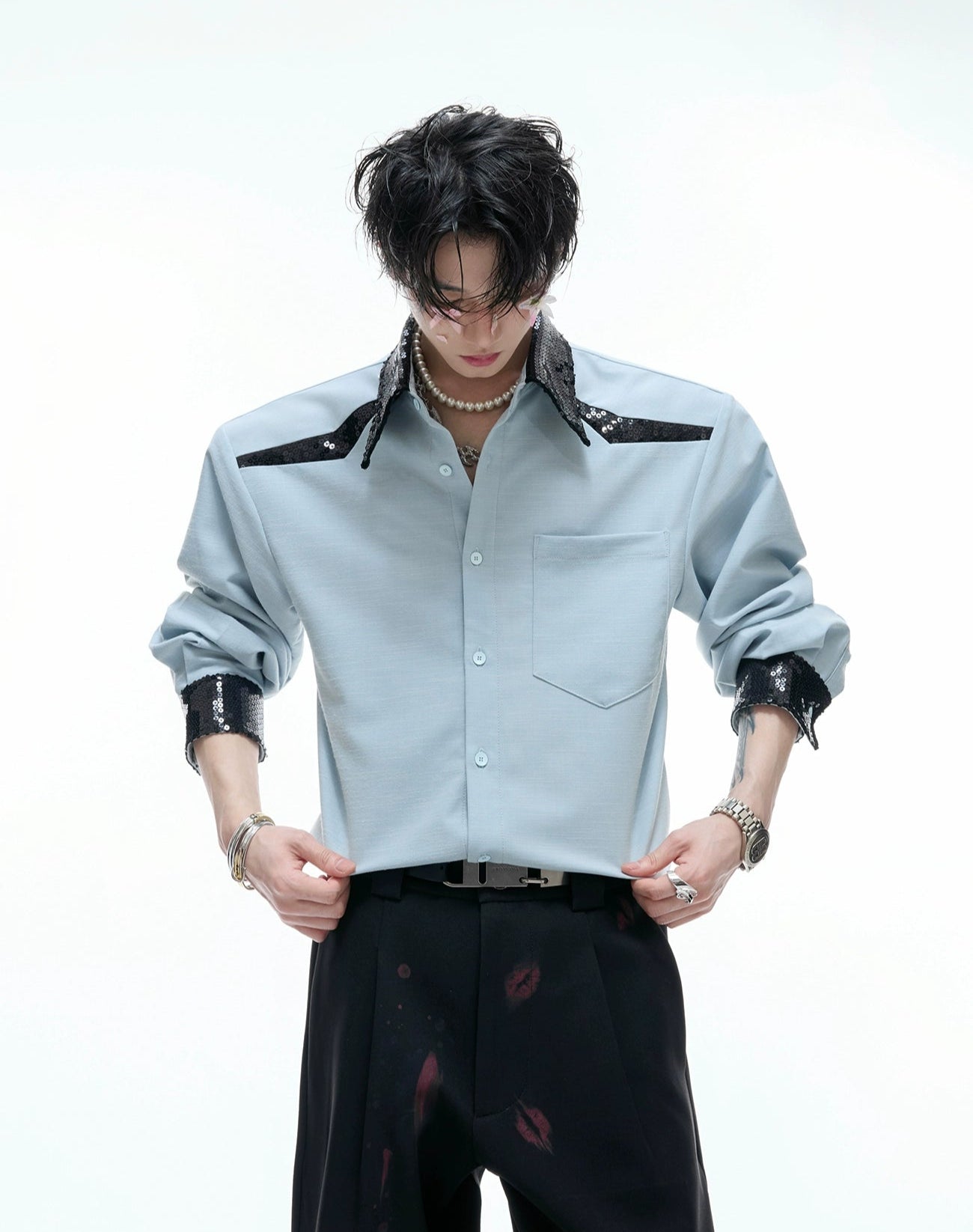 【25s Aug.】Sequined Contrast Lapel Shirt