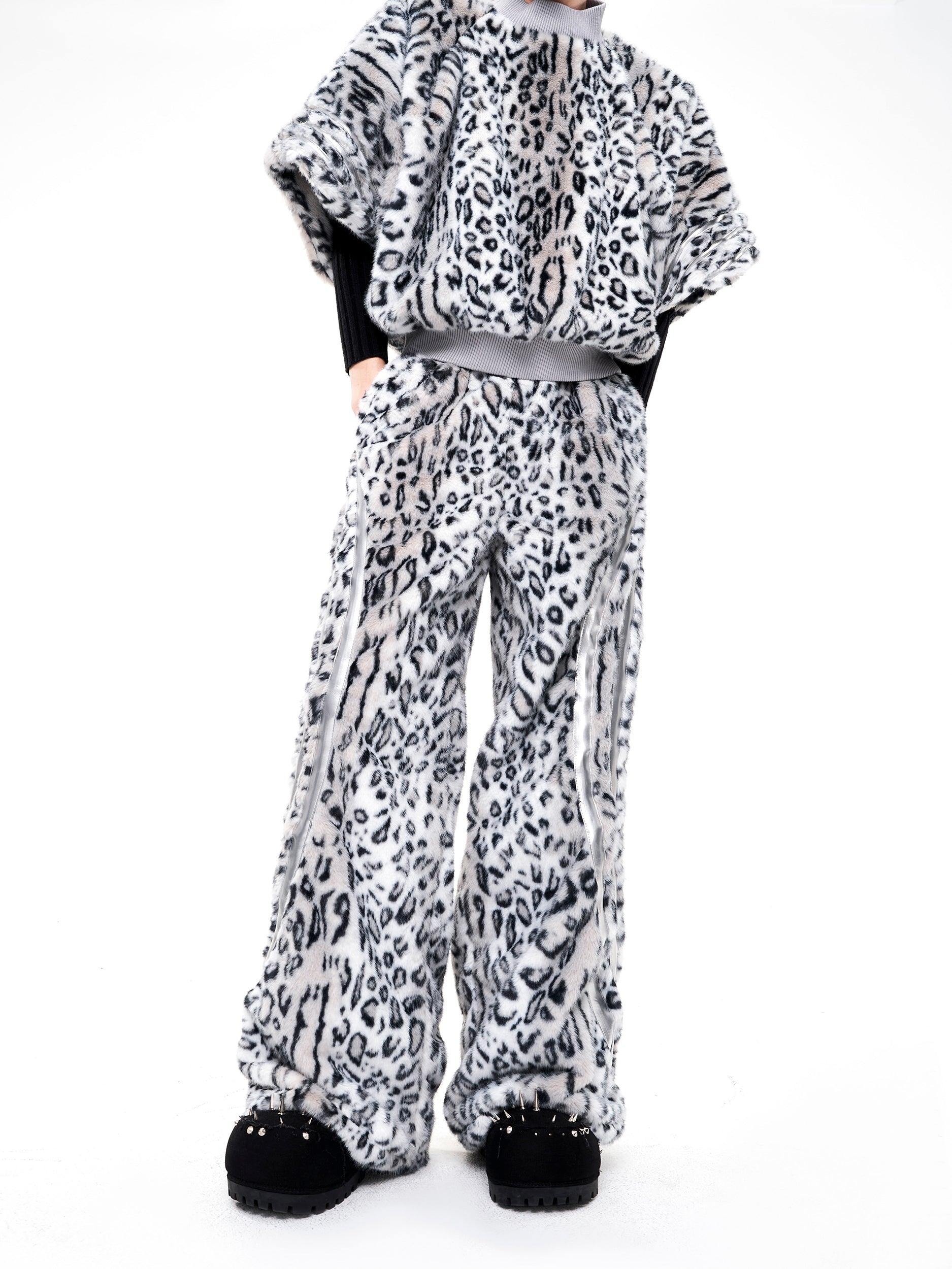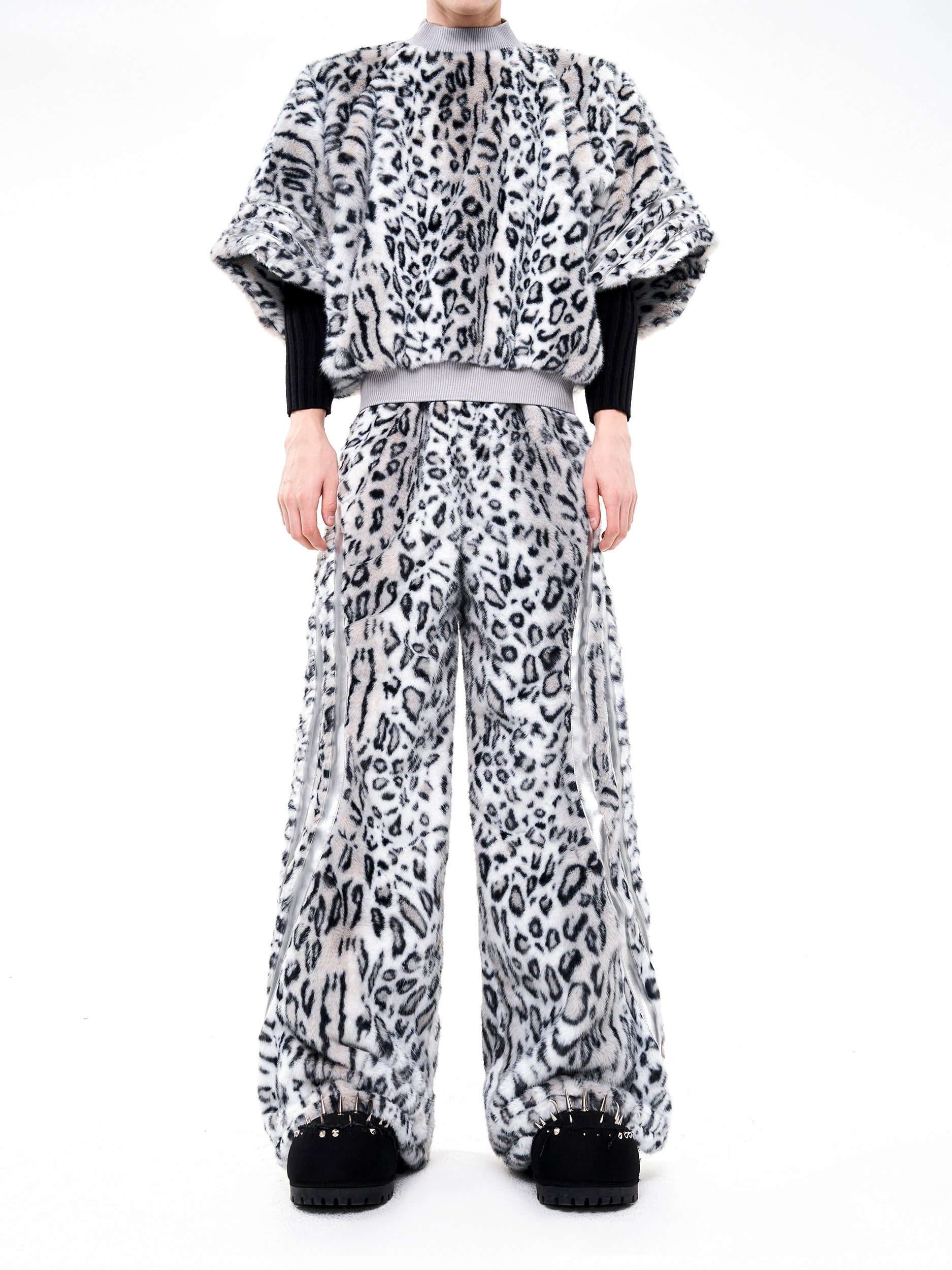 【25s Oct.】Short Furry Leopard Print Faux Fur Coat/Pants