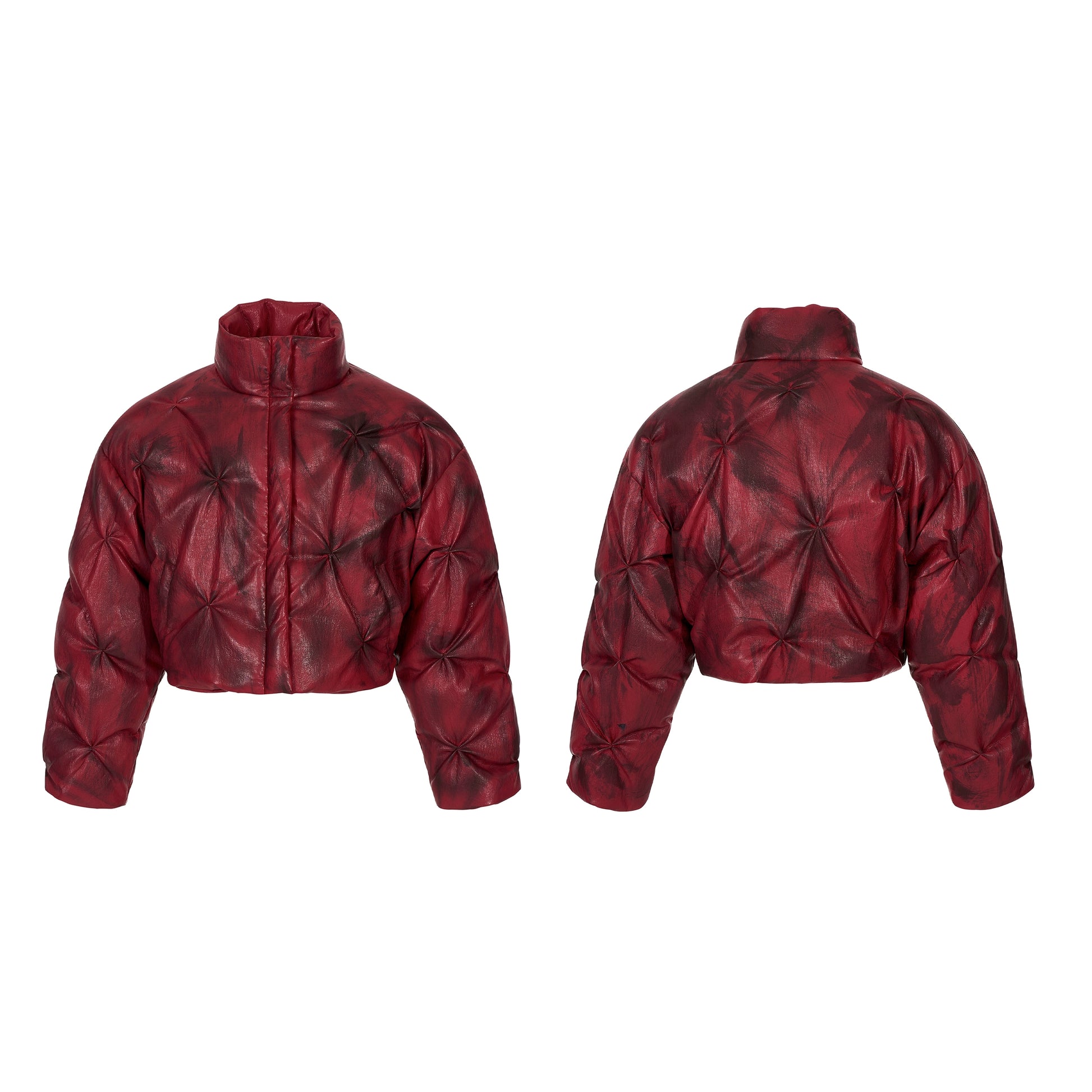 【25s Nov.】Spray-painted Pleated PU Leather Cotton Coat
