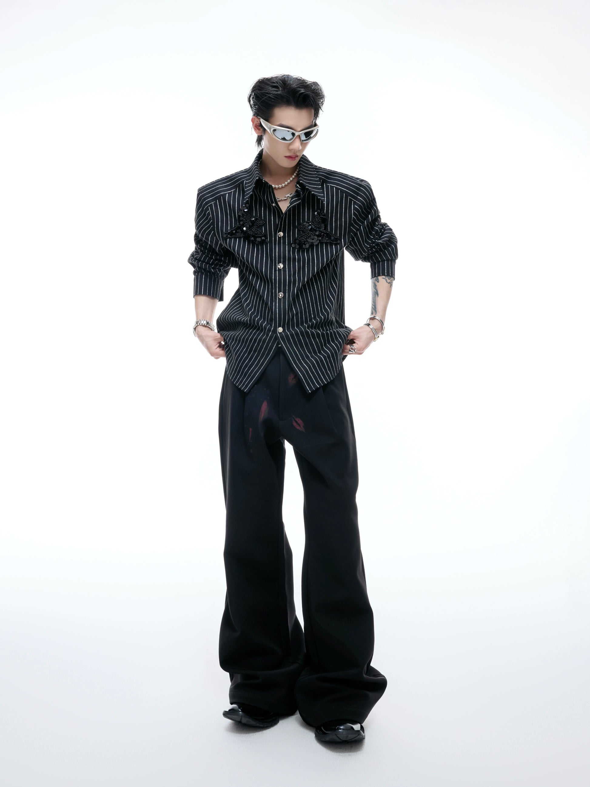 【25s Aug.】Striped Sequin-embroidered Linen Shirt