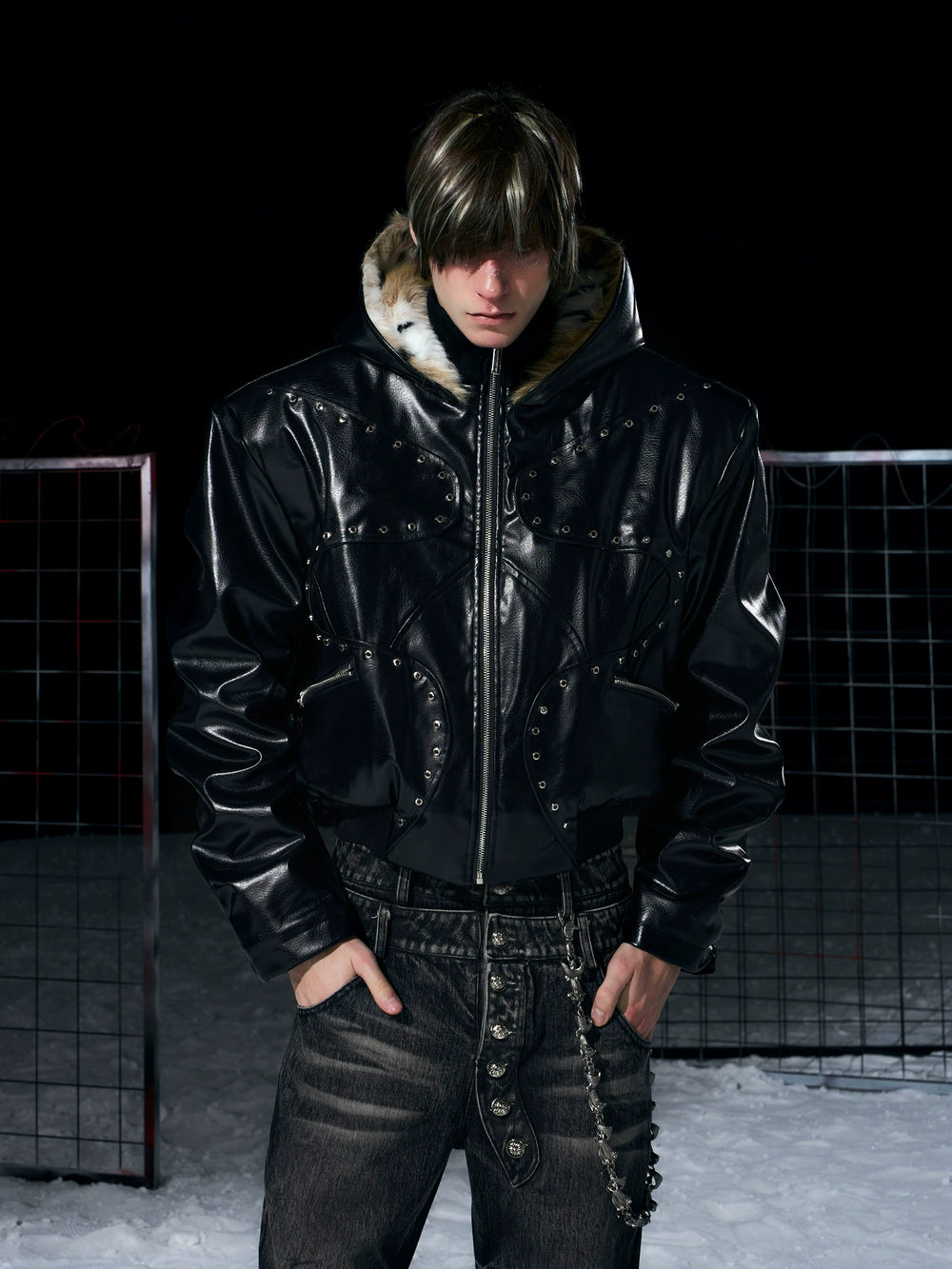 Studded Faux Fur Coat