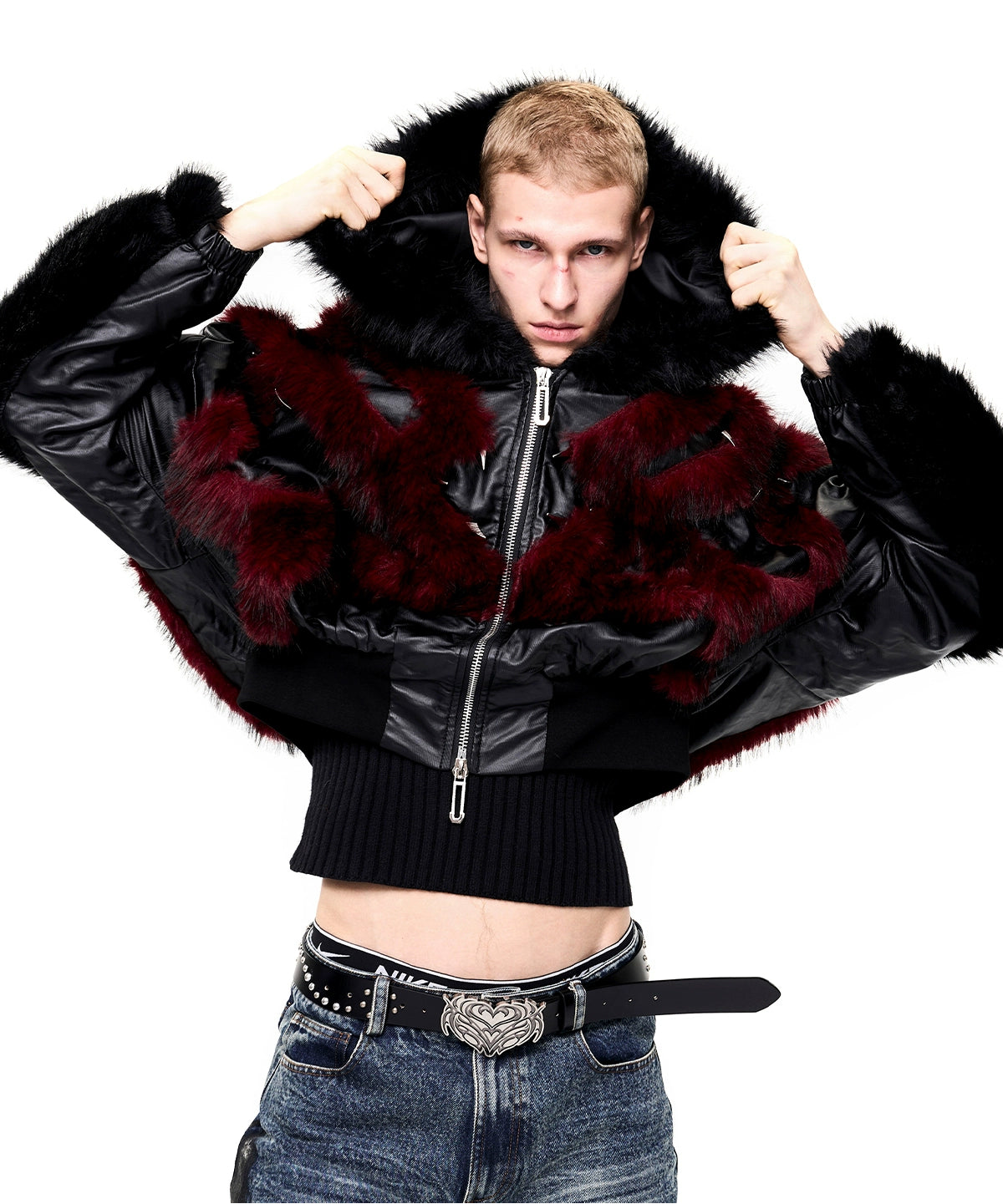 【25s Oct.】Studded Faux Fur Hooded Jacket