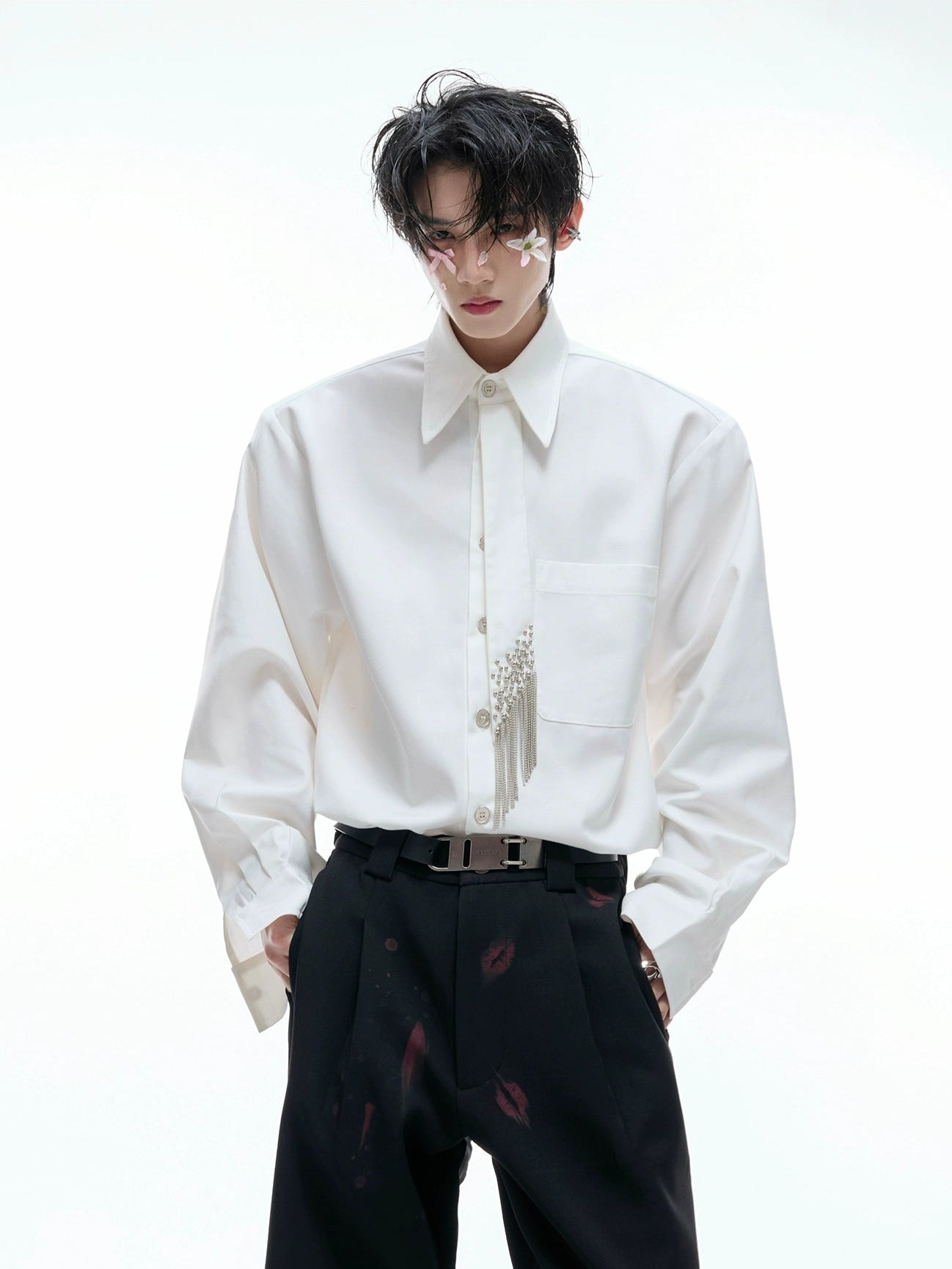 【25s Aug.】Tie-stitched Shoulder-padded Shirt