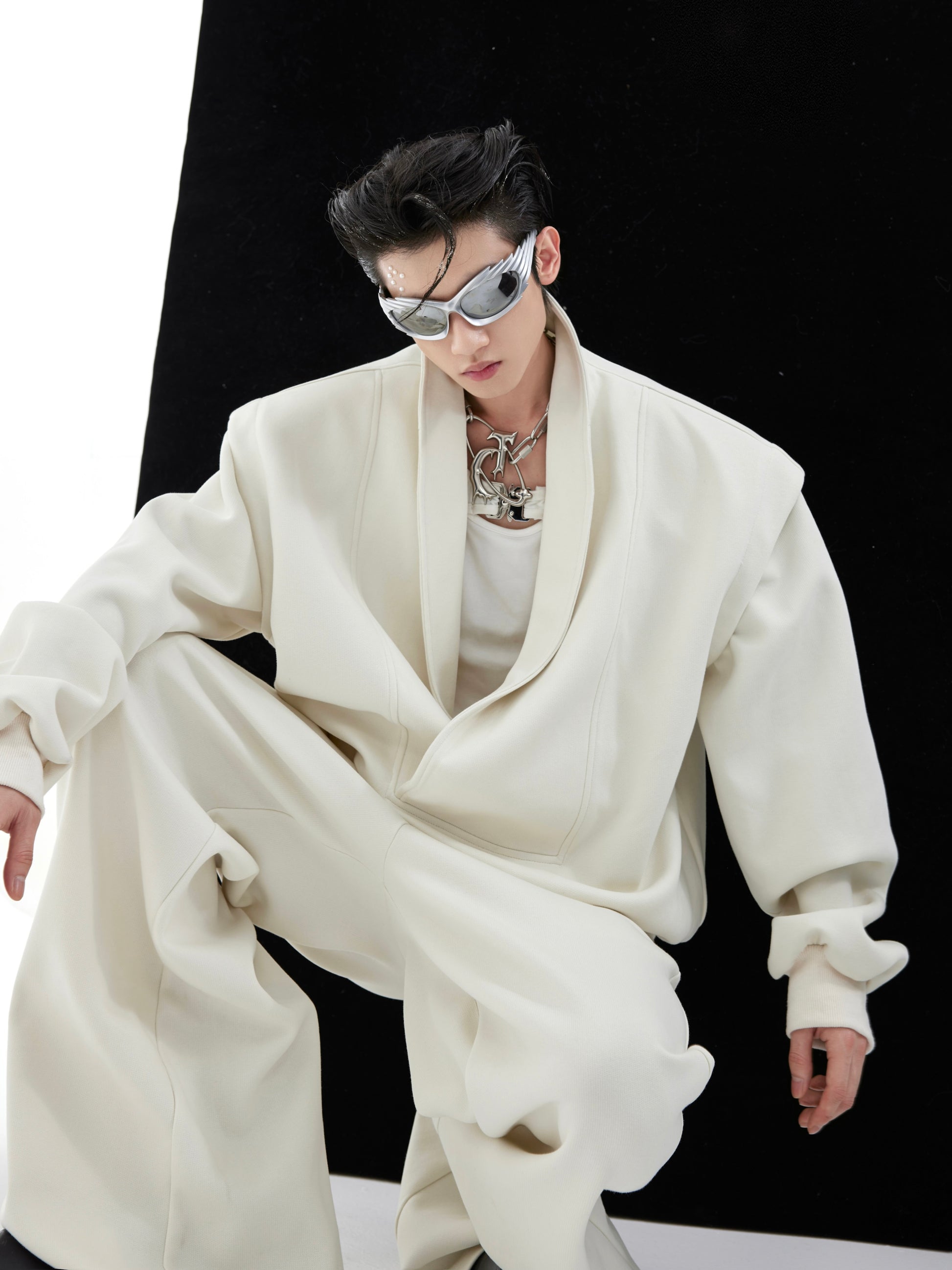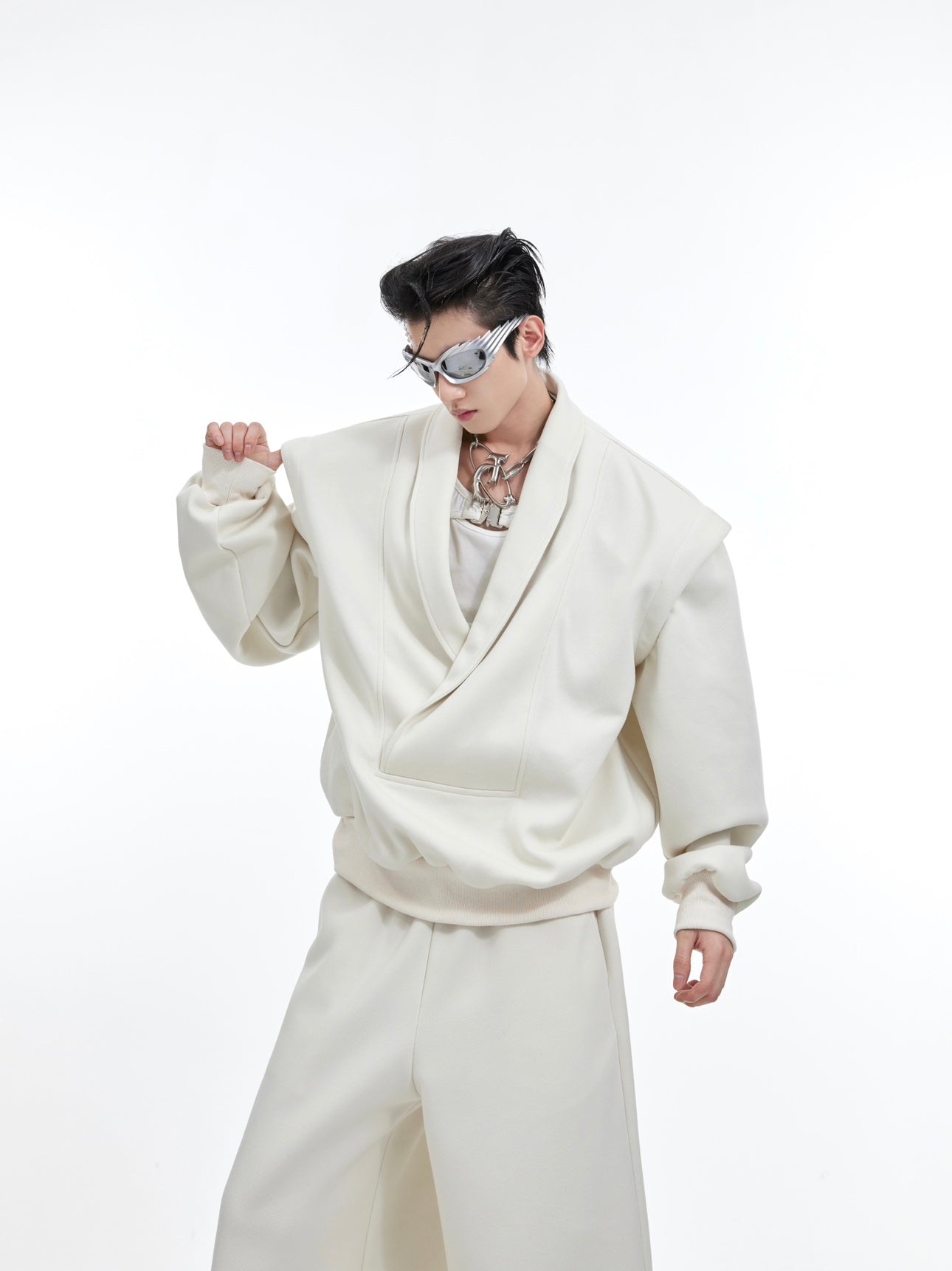 【24s January.】V-neck Metallic Embellished Sweatshirt Suit