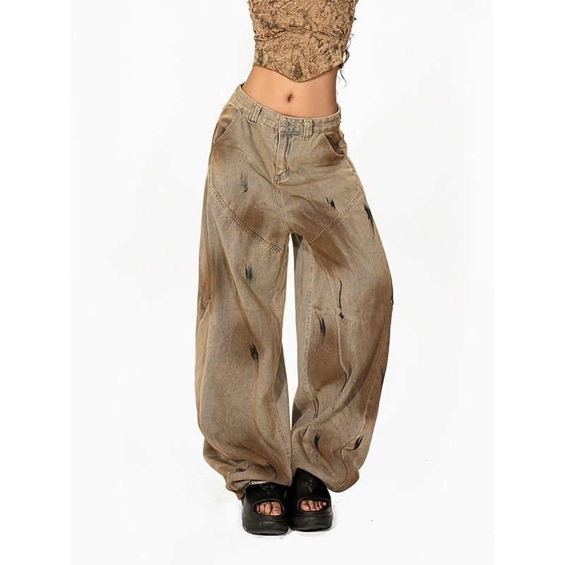 【25s Nov.】Vintage Washed Distressed Wide-leg Jeans