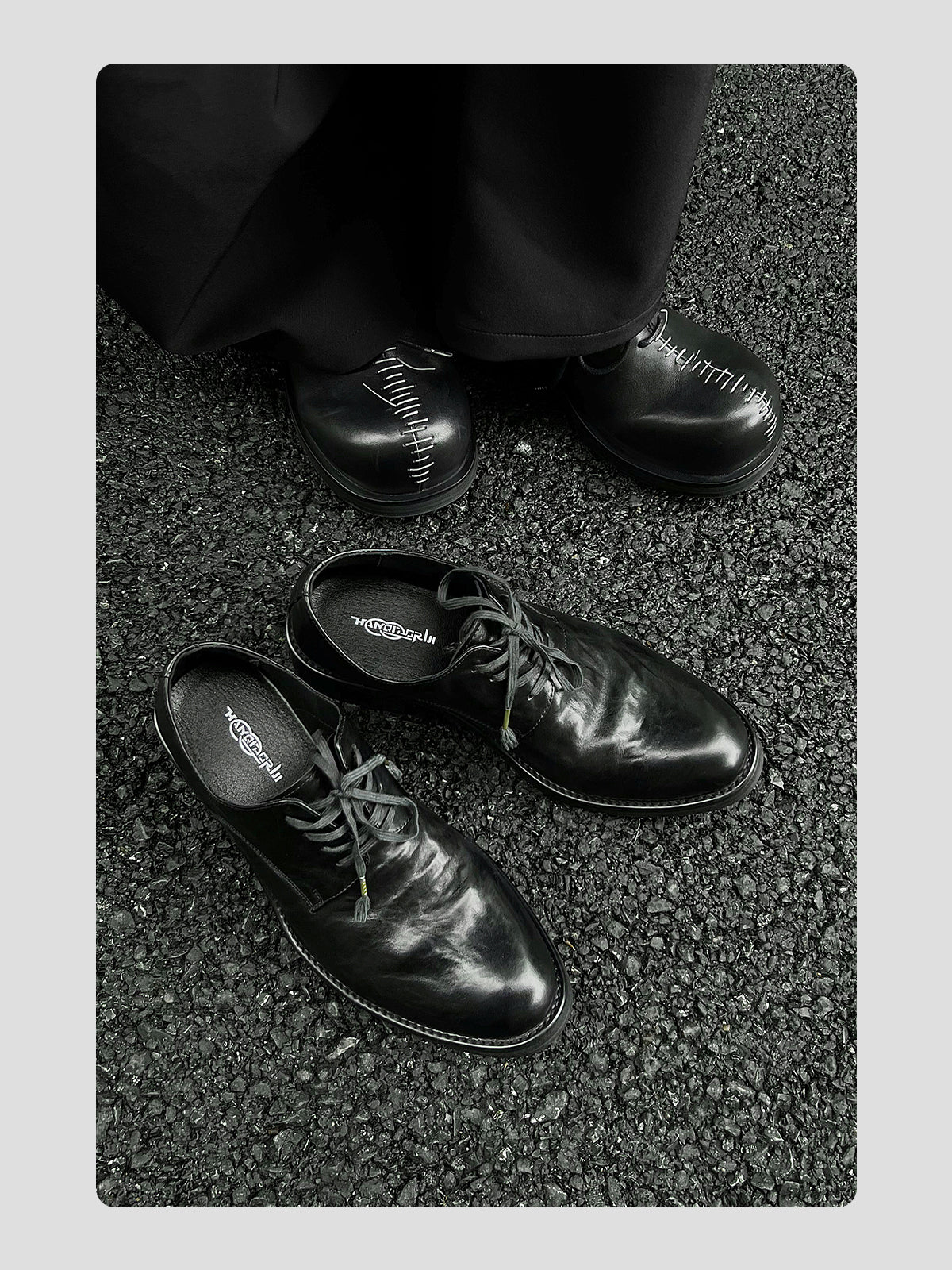 Wrinkled Top-grain Cowhide Pointed-toe Leather Shoes